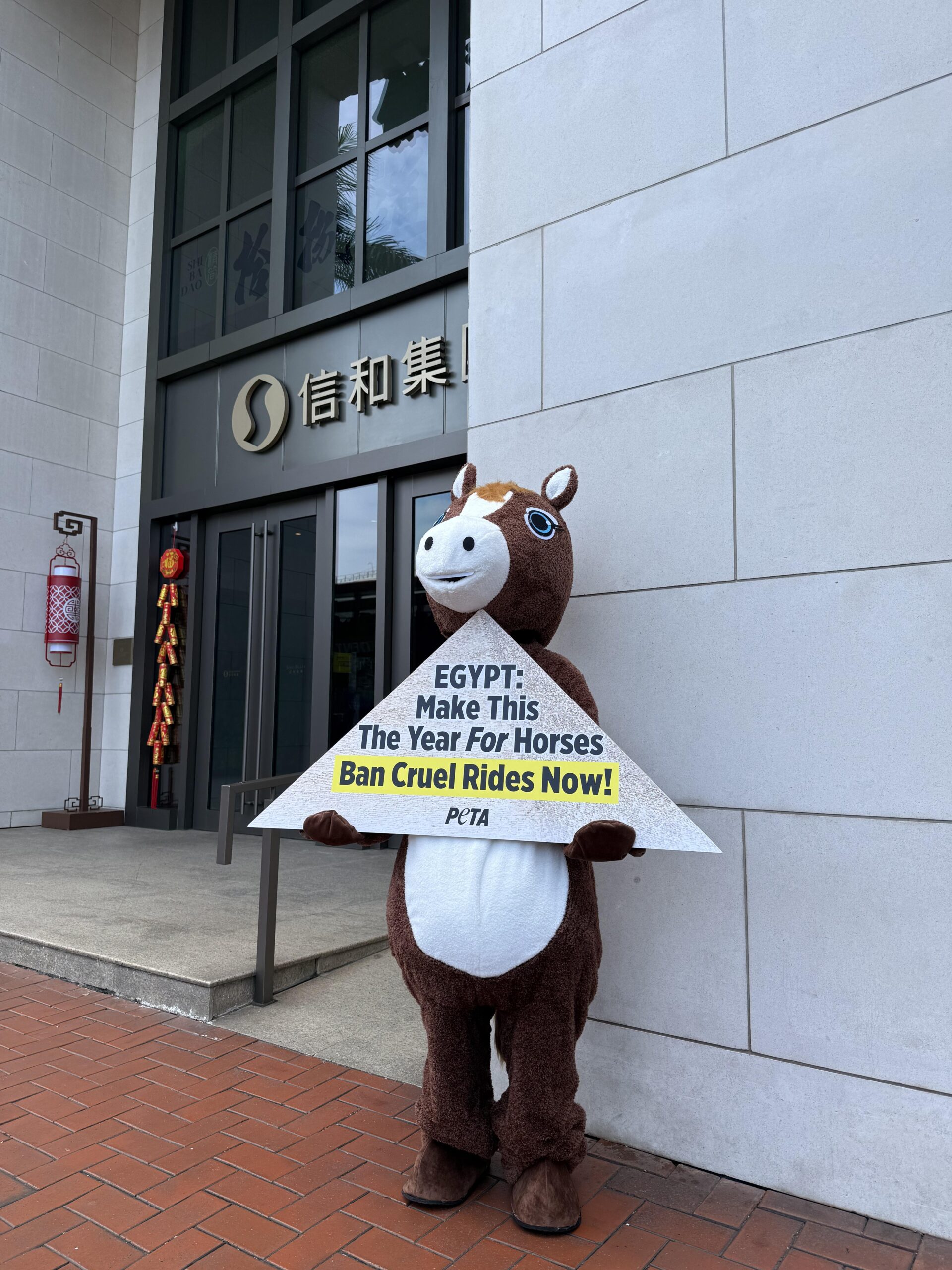 PETA’s signature campaign urging the Egyptian government to end tourist cycling activities in The Year of the Horse signifying freedom and vitality